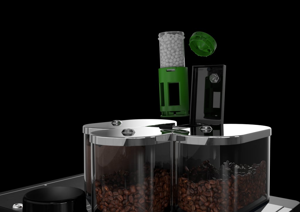 Provide up to three hoppers featuring a selection of two coffee bean types, chocolate powder, or twin toppings, offering versatile options to enhance beverage customization and variety.