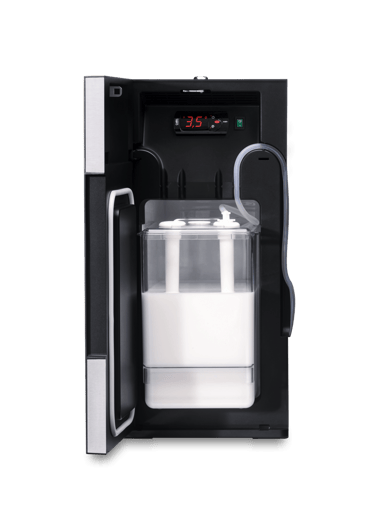 The new WMF Center Cooler is an indispensable companion in modern milk management. Equipped with a container for up to 10.5 liters of milk, this all-rounder supplies two fully automatic coffee machines at the same time. Thanks to integrated monitoring functions for temperature and fill levels, the Center Cooler makes operations easier.