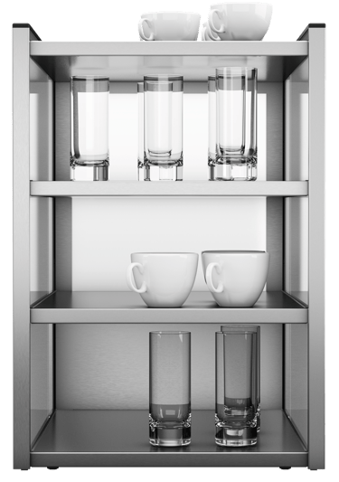 Preheating cups to about 50°C is absolutely essential to get the perfect hot coffee. Cup Warmer for 90 to 320 cups, mugs or glasses. Four heatable shelves made from anti-fingerprint coated stainless steel.