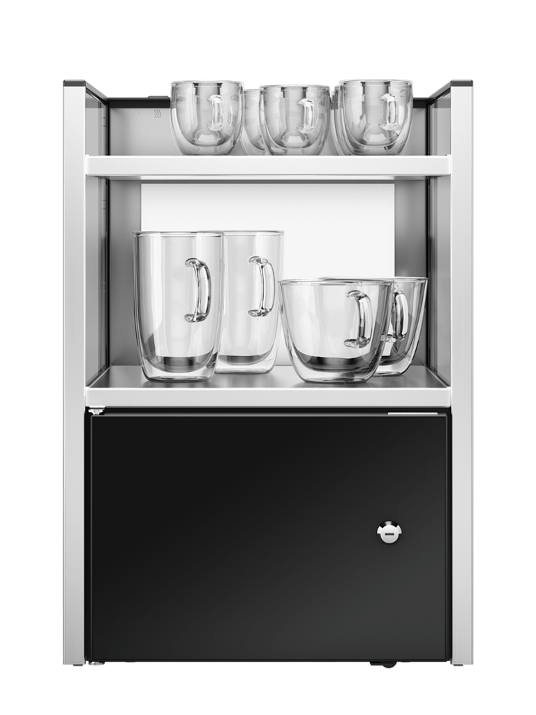 Based on the new Generation-Platform, the Cup and Cool is the matching design with a black back panel. The ideal combination of a cup warmer and a milk cooler in one casing saves space and is the most economical solution for both accessories combined into one.
