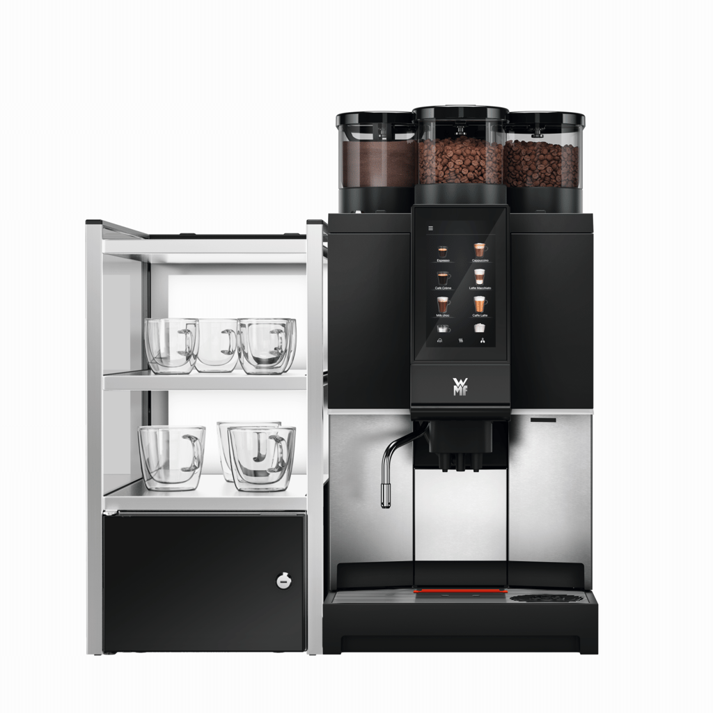 Presenting a menu of premium coffee and chocolate specialties, the WMF 1300 S enhances its predecessors' success with new features ensuring greater dependability and serviceability. With two coffee grinders, it offers a variety of freshly ground coffee beans. The WMF’s professional milk system allows diverse beverage creation. Ideal for venues requiring 120 cups daily.