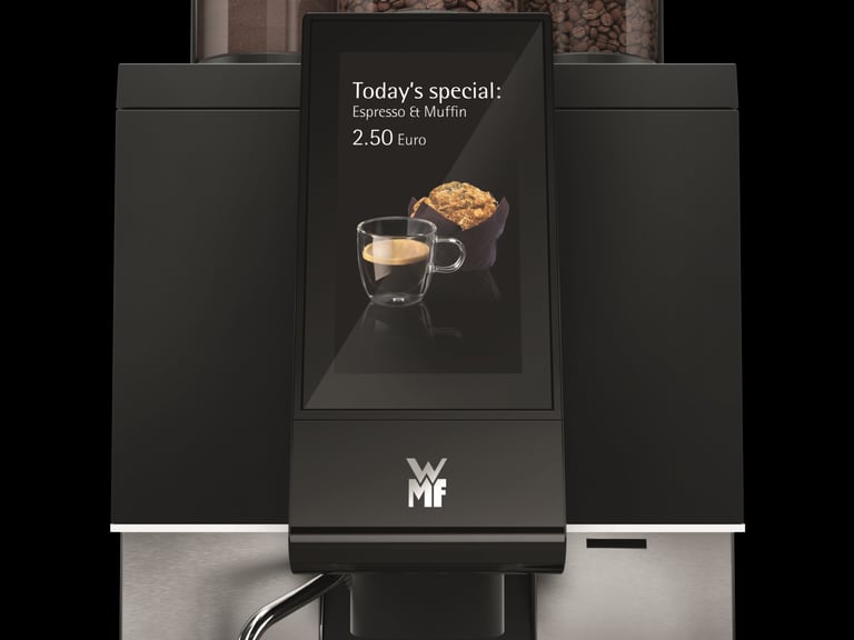 The vibrant 7" touch display showcases advertising images during beverage preparation, capturing attention and engaging customers or guests, creating an opportunity to boost additional sales effectively.