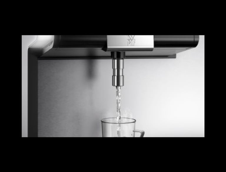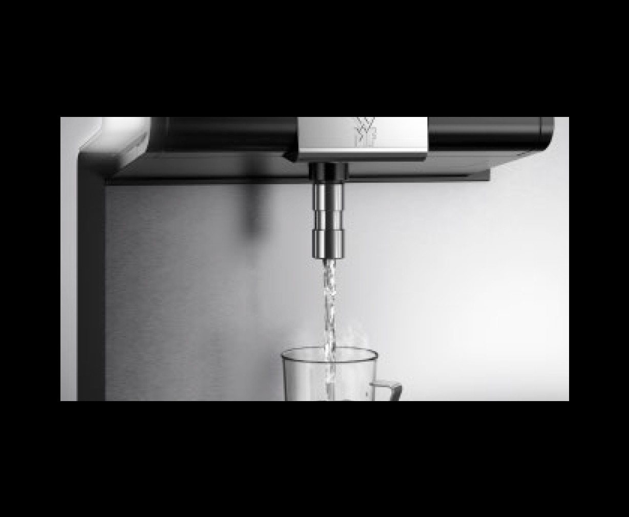 The spout below the display ensures efficient and user-friendly hot water dispensing, offering flexibility and speed, even for small quantities needed for tea or similar preparations.