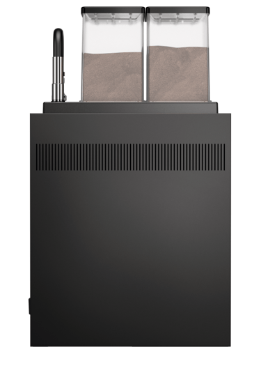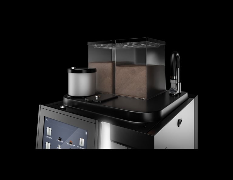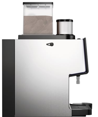 The two 2.5 kg hoppers allow offering two coffee types, such as regular and decaf, or doubling capacity for one type, providing convenience during peak times.